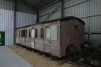 | LSWR | No.752 | Bogie Ironclad Third corridor | Stored, Under frame and body separate. Under-frame has body of SECR Bogie 4-compartment Brake Third No.4149 temporarily placed on it.[20] | N/A | Wight Locomotive Society | 1924 | ~ |