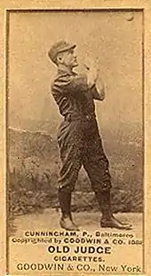 Five pitchers made multiple Opening Day starts for the Colonels. Guy Hecker had the most Opening Day starts for the Colonels, with four, starting in every Opening Day game from 1883 through 1886.[6][7][8][9] Toad Ramsey, Scott Stratton, Chick Fraser and Cunningham each made two Opening Day starts for the team.[5][10][11][12][13][14][15][16] After making the Opening Day start in 1884, Hecker went on to achieve what is now known as the pitching Triple Crown by leading the American Association in wins, with 52, strikeouts, with 385, and earned run average, with 1.80.[7][17] Hecker's 52 wins that season are 3rd all time among Major League Baseball pitchers.[18] No Baseball Hall of Famers made Opening Day starts for the Colonels. However, as of 2011, Mullane's 284 career wins ranked 3rd among eligible pitchers who have not been inducted to the Hall of Fame, behind just Bobby Mathews and Tommy John.[19]