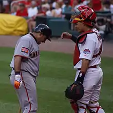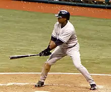 The first player born in Puerto Rico who played in MLB was Hiram Bithorn, who debuted as a pitcher with the Chicago Cubs on April 15, 1942.[2] This was followed by the introduction of African American players in Major League Baseball, which allowed more chances to players born in the island. Subsequently, Afro-Puerto Rican players such as Orlando Cepeda and Victor Pellot Power began having solid performances in the league, and were selected to participate in the Major League Baseball All-Star Game.[6] In 1973, Roberto Clemente became the first player from Puerto Rico and first Latin American to be elected as a member of the National Baseball Hall of Fame and Museum.[7] Since then Puerto Rico has kept a stable number of players in the league. During this timeframe, several players have been selected to participate in the All-Star Game or won awards for their performance, while others imposed records within the league. These include Javy López, who holds the record for most home runs hit by a catcher in a single season.[8] Both Iván Rodríguez and Roberto Alomar hold the record for most Gold Glove Awards in their positions.[9][10] Recipients of the Most Valuable Player Award include Orlando Cepeda, Juan González and Iván Rodríguez. Roberto Clemente and Mike Lowell also won the World Series MVP Award in their respective divisions.[11] Carlos Delgado is the only Latin to hit 4 homers in a game.