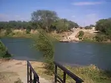 | Mercedes | Mercedes, Texas | Río Rico | Río Rico, Tamaulipas | The Thayer Bridge (also called the Río Rico Bridge) was built in 1928 and opened up the Mexican border town of Río Rico as a tourist destination during prohibition with bars and even a casino.[5] The crossing was located about two miles (3.2 km) downstream from where the Progreso bridge would later be built. The bridge was destroyed by a flood in 1941. After its destruction, temporary access was provided by ferry and pontoon bridge, but all service had ended by 1946. In 1967, it was discovered that Rio Rico had actually been located on US soil all along, and in 1970, the land was officially ceded to Mexico. Approximately 1000 people who provided evidence they were born in Río Rico over the years were given US citizenship.[6] |