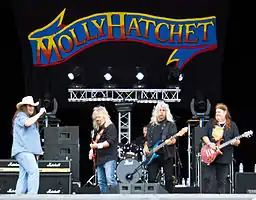 On September 2, 2017 guitarist Dave Hlubek died of a heart attack.[27] The group continued to perform with just one guitarist, as Ingram stated that he "could never" replace Hlubek.[28] On October 29, 2018, former vocalist Jimmy Farrar died due to complications from congestive heart failure, kidney failure and liver failure.[29] Molly Hatchet continued to tour until Phil McCormack died on April 25, 2019.[30] Jimmy Elkins took his place and was officially announced as the band's new vocalist in October 2019.[31] Steve Holland, the last original member of the group, died on August 2, 2020.