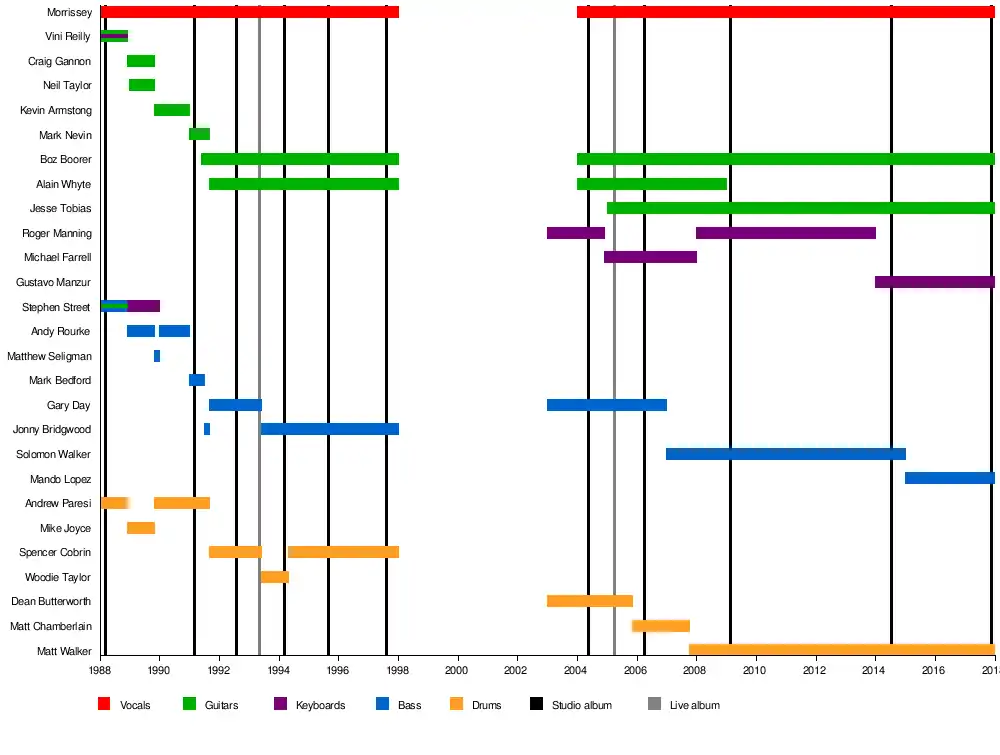 | Morrissey | 1988–present | lead vocals | All Morrissey releases |