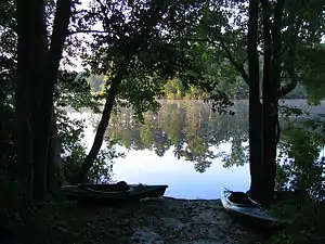 At the beginning of the twentieth century, New Jersey did not have much of a lumber or forestry industry. The value of its trees was insignificant and undermined by destruction by uncontrolled forest fires, and after decades of clear-cutting forests to fuel iron forges, furnaces, and other industrial operations.[1][2] In 1896, the state geologist recommended the acquisition of land for parks in order to protect water supplies and to provide natural recreation to the state's increasing urban populations.[3] After several years of reports and advocacy of geologists and naturalists (including, notably, U.S. forester Gifford Pinchot), New Jersey governor Edward C. Stokes established the Forest Park Reservation Commission in 1905 to protect forest land and create a system of park reserves within the state.[3][4][5] At the commission's meeting on September 12, 1905, the commissioners adopted the Salem Oak (of Salem, New Jersey) as a symbol of New Jersey's parks.[6] The commissioners acquired two tracts in southern New Jersey, near Mays Landing and along the Bass River, as the first state forest reserves.[7] The Mays Landing tract was sold in 1916 after opposition from local officials and landowners made acquisition and expansion on adjacent lands impossible. The Bass River tract became the core of Bass River State Forest.[8] In 1907, the commissioners would also acquire 5,000 acres (20 km2) on Kittatinny Mountain near Culver's Gap, supplemented by a gift from Governor Stokes, which would become the core of Stokes State Forest.[9] The reservations, which by 1912 comprised 13,720 acres (55.5 km2) became sites for studying forests, reforestation projects, and scientific forestry.[10] With the acquisition of a tract that included Swartswood Lake in Stillwater Township, the commission began developing parks for the purposes of recreation by providing boating, fishing, camping, and picnicking. In the Commission's 1915 Annual Report, they stated "It is intended to make Swartswood a public playground. Boat liveries and picnic shelters to be maintained under proper control will make it available to a large number of people".[11] The Forest Park Reservation Commission was consolidated with other agencies into the Department and Board of Conservation and Development on April 8, 1915.[12]