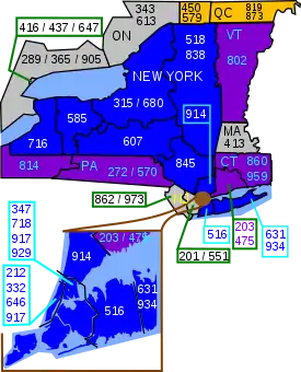 The North American Numbering Plan Administration has divided the state of New York into twelve geographical areas with a total of 19 numbering plan area (NPA) codes.