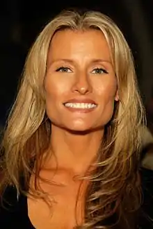Lisa Matthews (born Lisa Reich on September 24, 1969, in Peoria, Illinois)[11] is an American model and actress. She was chosen as Playboy's Playmate of the Month for April 1990, and was later named 1991's Playmate of the Year. She received over $100,000 for her winnings.[12] That year, Matthews appeared in the Bruce Willis film Hudson Hawk. She dated the movie's producer, Joel Silver.[13][14] In 2017 at the age of 48 Matthews duplicated her Playmate of the Year cover along with her cohorts Kimberly Conrad, Renee Tenison, Candace Collins, Cathy St. George, Kemp Muhl, and Monique St. Pierre nearly three decades on.[15]