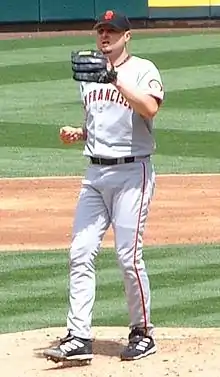 The San Francisco Giants are a Major League Baseball franchise based in San Francisco, California. They moved to San Francisco from New York City in 1958.[1] They play in the National League West division. The first game of the new baseball season for a team is played on Opening Day, and being named the Opening Day starter is an honor, which is often given to the player who is expected to lead the pitching staff that season,[2] though there are various strategic reasons why a team's best pitcher might not start on Opening Day.[3] Through 2016, the Giants have used 30 different Opening Day starting pitchers in their 58 seasons since moving to San Francisco. The 30 starters have a combined Opening Day record of 27 wins, 16 losses and 16 no decisions.[4] No decisions are only awarded to the starting pitcher if the game is won or lost after the starting pitcher has left the game.[5]