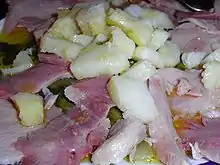 ham a type of jamón generally served raw in thin slices, similar to the Italian prosciutto crudo.