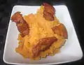 Patatas revolconas Castile and León potato dish Mashed potatoes with paprika, often accompanied by torreznos