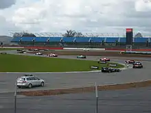 Formation lap around Brooklands corner at Silverstone Circuit in 2010