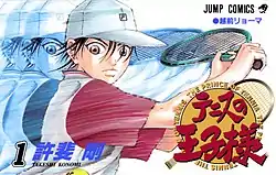 The Prince of Tennis manga spans a total of 379 chapters (380 if chapter "0" is included), which have been collected into 42 tankōbon volumes.[2] Shueisha distributed these volumes in Japan, with the first volume being released on January 7, 2000, and the last on June 4, 2008.[3][4] Each of the chapters are referred to as a "Genius", with the exception of chapters 245 to 247 which are primarily referred to as the "Wild" chapters since they are told from a different character's point of view.[5][6] The sequel's chapters are each referred to as a "Golden Age". Three official fan books were also released by Shueisha, as well as one illustration book.[7][8][9][10] Kenichi Sakura created a short tribute manga entitled The Prince of Afterschool, which began serialization in Jump Square in November 2008.[11]