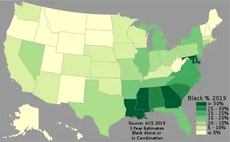 % Black by state in 2019