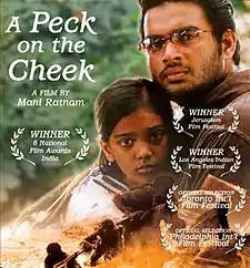 This is a list of awards and nominations received by the 2002 Indian Tamil-language film Kannathil Muthamittal. The film was highly appreciated upon its release and went on to win several awards and nominations at different award ceremonies the following year. It also had a highly acclaimed soundtrack which got A. R. Rahman his fourth National Film Award for Best Music Direction for the second consecutive time after Lagaan for both his songs and background score.[1] The film holds a record of six National Film Awards wins which is the highest by any Tamil Film tied with Aadukalam and also being the highest for the year 2002. The film has won a total of 40 awards since its release.[2]