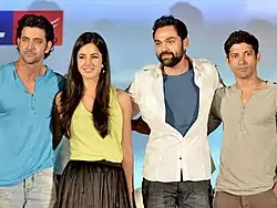 Zindagi Na Milegi Dobara (English: You Live Only Once)[1] is a 2011 Indian coming-of-age film directed by Zoya Akhtar, who also co-wrote the film along with Reema Kagti.[2] It is produced by Excel Entertainment. The film stars an ensemble cast of Hrithik Roshan, Farhan Akhtar, and Abhay Deol, with Katrina Kaif and Kalki Koechlin in supporting roles.[2] The musical score for the film was composed by the trio Shankar–Ehsaan–Loy. Its cinematography was provided by Carlos Catalan.[2] The film narrates the story of three friends on a bachelor trip and how each of them discover themselves and overcome their problems and insecurities.[3]