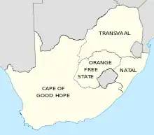 Map of the Transvaal Province (red) within South Africa.