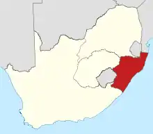 Map of the Natal Province (red) within South Africa.
