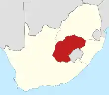 Map of the Orange Free State Province (red) within South Africa.