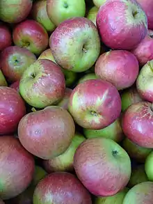 Over 7,500 cultivars of the culinary or eating apple (Malus pumila) are known.[1] Some are extremely important economically as commercial products, though the vast majority are not suitable for mass production. In the following list, use for "eating" means that the fruit is consumed raw, rather than cooked. Cultivars used primarily for making cider are indicated. Those varieties marked agm have gained the Royal Horticultural Society's Award of Garden Merit.[2]