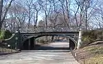 1859[53] | Center Drive | Pedestrian path | 24 feet (7.3 m) | 65 feet (20 m) | 11 feet (3.4 m) | Driprock Arch carries Center Drive over what was formerly a bridle path,[53][54] and before that, the former course of a mill stream that ran into what is now the Pond.[55] The bridle path was demolished in the 1930s when Heckscher Playground was expanded, and a pedestrian path now passes underneath Driprock Arch. The arch contains a red-brick vault, spandrels, and revetments, as well as sandstone trim.[53][56] There are sandstone rosaries set into the vault's ceiling.[55] |