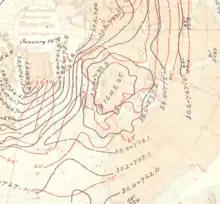 - 23 January 1907 in Riga at 1068.7 hPa, this value is from a student generated report from the Free University of Berlin Adopt a Vortex scheme.[4] (supported with a 1068 hPa pressure reported in a Danish Meteorological Society publication.[5])
