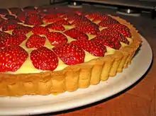 - Tart – a baked dish consisting of a filling over a pastry base with an open top not covered with pastry