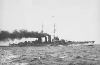 The Imperial Japanese Navy (大日本帝国海軍) built four battlecruisers, with plans for an additional four, during the first decades of the 20th century. The battlecruiser was an outgrowth of the armoured cruiser concept, which had proved highly successful against the Russian Baltic Fleet in the Battle of Tsushima at the end of the Russo-Japanese War. In the aftermath, the Japanese immediately turned their focus to the two remaining rivals for imperial dominance in the Pacific Ocean: Britain and the United States.[1] Japanese naval planners calculated that in any conflict with the U.S. Navy, Japan would need a fleet at least 70 percent as strong as the United States' in order to emerge victorious. To that end, the concept of the Eight-Eight fleet was developed, where eight battleships and eight battlecruisers would form a cohesive battle line.[2] Similar to the German Imperial Navy (Kaiserliche Marine) and in contrast to the Royal Navy,[3] the Japanese envisioned and designed battlecruisers that could operate alongside more heavily armoured battleships to counter numerical superiority.[4]