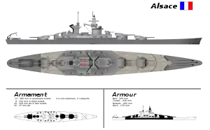 By the mid-1930s, the French again embarked on a naval construction program to counter the German and Italian fleets, resulting in the two Dunkerque-class battleships and four Richelieu-class battleships; of the four Richelieus, two were cancelled by the start of World War II, and only one was completed in time to see action during the war. A final design, the Alsace class, was authorized in 1940 after the war began but France's defeat in the Battle of France ended the program. The two Dunkerques saw limited action during the war, with Dunkerque being sunk during the British attack on Mers-el-Kébir to prevent her from being seized by the Germans. Bretagne and Provence were also sunk there, and the third member of the class, Lorraine, was seized by the British and turned over to the Free French Naval Forces. Refloated and returned to Toulon, Dunkerque and Provence were later scuttled there with the former's sister ship Strasbourg when the French intentionally scuttled the fleet to prevent German soldiers from capturing the vessels. Richelieu meanwhile was overhauled in the United States and served with the Free French from 1943. Jean Bart, with only one main battery gun turret operational, briefly engaged United States forces during Operation Torch in November 1942, and was eventually completed in the late 1940s. Both she and Richelieu served as training ships before eventually being decommissioned in 1968.