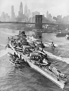 The four ships' service history largely mirrored that of the République class. In 1909, Liberté, Justice, and Vérité traveled to the United States for the Hudson–Fulton Celebration and, in 1911, they joined the Républiques in the 2nd Squadron. In September that year, Liberté was destroyed by an accidental explosion while moored in Toulon; the cause of the blast was determined to be the same unstable Poudre B that had destroyed Iéna in 1907. Along with their squadron mates, the three surviving Libertés escorted convoys early in World War I and took part in the Battle of Antivari.[76] Vérité briefly took part in operations against the Ottomans in November and December,[77] and later took part in the operations in Greece in 1916 and early 1917. After securing Greece's alliance, the ships returned to the fleet's main wartime anchorage at Corfu, where it remained for the rest of the war. Immediately after the German surrender, Justice and Démocratie were sent to the Black Sea to oversee German demilitarization and then to take part in the Allied intervention in the Russian Civil War. War-weary sailors later mutinied in several vessels and forced the French to withdraw in 1919. The three ships saw no further significant service and all were discarded in 1921–1922[78]