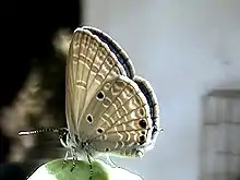 - Banded blue Pierrot, Discolampa ethion Westwood, 1851 previously Castalius ethion Doubleday & Hewitson (L9.3)