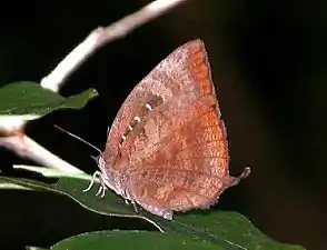 - Common brownie, Miletus boisduvali Moore, 1857[7][9]