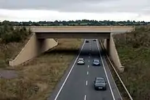 | Lichfield Canal Aqueduct | Lichfield Canal | 52.655164°N 1.901584°W | A modern construction for a canal under restoration; not yet in water. Crosses the M6 Toll. | ![]() View of the open ended aqueduct over the M6 Toll | |