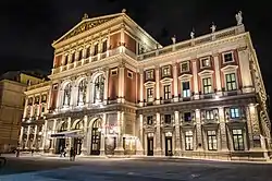 A concert hall is a cultural building with a stage that serves as a performance venue and an auditorium filled with seats. While early halls built in the 18th and 19th century were designed for classical orchestra, concerto and opera concerts and ballet performances, halls built in the 20th and 21st century were often built to accommodate a wider range of performance types, including musicals. In the 2010s, popular music such as rock music and traditional music such as folk music are also performed in these venues. Many concert halls exist as one of several halls or performance spaces within a larger performing arts center. In many towns, the concert hall is combined with a convention center. Concert halls typically also contain orchestral rehearsal rooms. Many larger cities have both public and private concert halls. Particularly in smaller cities with fewer alternative venues, concert halls may also be used to accommodate other activities, from theatrical performances to academic presentations and university graduation ceremonies.