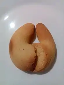 This is a list of notable cookies (American English), also called biscuits (British English). Cookies are typically made with flour, egg, sugar, and some type of shortening such as butter or cooking oil, and baked into a small, flat shape.