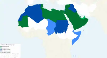 As of 2018, there are 4 independent countries where Arabic has a special status according to the constitution. The following is a list of sovereign states and territories where Arabic has a special status according to the constitution.