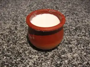 A buttermilk preparation from India. It is consumed all year round where it is usually taken along with meals. It contains raw milk, cream (malai) or yogurt which is blended manually in a pot with an instrument called madhani (whipper). | |