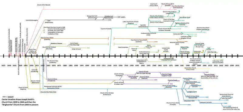 Smith's original church,[6] and those bodies which broke with him during his lifetime.