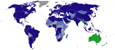 | a. | ^ Kosovo is the subject of a territorial dispute between the Republic of Kosovo and the Republic of Serbia. The Republic of Kosovo unilaterally declared independence on 17 February 2008. Serbia continues to claim it as part of its own sovereign territory. The two governments began to normalise relations in 2013, as part of the 2013 Brussels Agreement. Kosovo is currently recognized as an independent state by 99 out of the 193 United Nations member states. In total, 113 UN member states recognized Kosovo at some point, of which 14 later withdrew their recognition. |