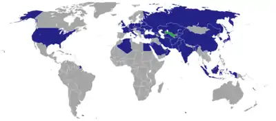 Map of diplomatic missions in Uzbekistan