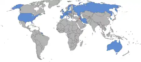 This page lists the representative offices of Kurdistan Region, autonomous region of Iraq. The Kurdish presence abroad has grown significantly since 2007. The KRG currently has representative offices in 13 countries and a mission to the EU.[1]