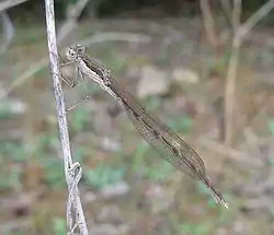 - Lestes viridis (Chalcolestes viridis), willow emerald damselfly - locally abundant