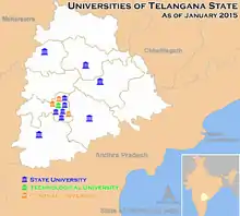 Universities map of Telangana State (click on the map to enlarge)