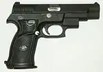 | P-83 Wanad | ![]() | 9 mm Makarov semi-auto pistol | P-83 | ~5000 | Being slowly supplemented in military service by WIST-94. Still in heavy use in Polish police services.[1] To be replaced with 21,000 new pistols.[2] P-83 and WIST-94 are to be replaced by new handgun in near future.[3] | |