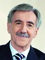 A moustache which has its ends grown much longer and often flared out. This is usually accentuated by styling the hair with a product such as hair gel or moustache wax. Occasionally, the ends are worn in loops. |