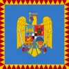 ![]() | 1863—1866 | Army flag of the United Principalities of Romania and after 1866 Principality of Romania | Blue-yellow-red horizontal tricolor with red above. Flying crowned aquila with the coats of arms of Wallachia and Moldavia over it. The aquila holds the sceptre and the sword. In the corners, the monogram of prince Alexandru Ioan Cuza, surrounded by a laurel wreath. On the red scarf it is written: HONOR ET PATRIA. |