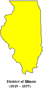 The United States District Court for the District of Illinois was established by a statute passed by the United States Congress on March 3, 1819, 3 Stat. 502.[11][18] The act established a single office for a judge to preside over the court. Initially, the court was not within any existing judicial circuit, and appeals from the court were taken directly to the United States Supreme Court. In 1837, Congress created the United States Court of Appeals for the Seventh Circuit, placing it in Chicago, Illinois and giving it jurisdiction over the District of Illinois, 5 Stat. 176.[18] The District itself was eliminated by a statute passed on February 13, 1855, 10 Stat. 606, under which it was subdivided into the Northern and the Southern Districts.[18] The boundaries of the District and the seats of the courts were set forth in the statute: