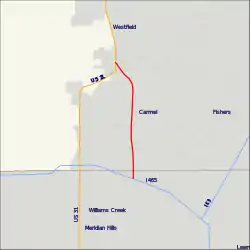 The former State Road 431, now simply Keystone Parkway, remains a busy route connecting U.S. Route 31 with Interstate 465 at Exit 33. It passes through the Indianapolis suburb of Carmel, allowing traffic on U.S. 31 north of Carmel a shorter route to I-465 and the east side of Indianapolis. Until the 1990s, the State Road 431 designation extended south of I-465 to 86th Street. Prior to that, it also continued south along N. Keystone Avenue to S.R. 37 at Fall Creek Parkway, North Drive in Indianapolis.