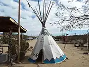 The Miller family were among the first settlers. They owned the "Station", the first stage stop established in the area. They also owned a ranch at the base of Gavilan Peak. All seven members of the family were massacred in an Apache raid, precipitating U.S. Cavalry campaigns against the Apaches.[1] The US Cavalry thus became involved in a campaign in the area to protect the settlers from further attacks. They drove out the Apaches and extended the Stoneman Military Trail which was to connect Fort McDowell in Phoenix with Fort Whipple in Prescott. The campaign ended in 1886 and the military established a base on Gavilan Peak. In 1890, the New River Stagecoach Stop was established and later became known as the Wranglers Roost Stagecoach Stop.[1]