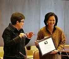 Mu Sochua receives the Eleanor Roosevelt Award for Human Rights in 2009 at The George Washington University