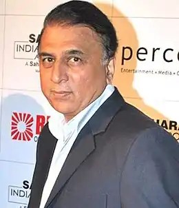 Sunil Gavaskar is a former international cricketer who represented and captained the Indian cricket team. In a career spanning over 16 years he made 35 centuries (100 or more runs) at the international level.[2] Described as one of the greatest opening batsmen in cricket history,[3][4] Gavaskar played 125 Test matches and scored 10,122 runs.[3] He was the first batsman to score 10,000 Test runs and held the record for most runs until Allan Border surpassed it.[5] Gavaskar's record of 34 Test centuries stood for almost two decades before Tendulkar surpassed it in December 2005.[6] He was named the Indian Cricket Cricketer of the Year in 1971 and as one of the Wisden Cricketers of the Year in 1980.[3][7] In February 2012, the International Cricket Council (ICC) inducted him into the ICC Cricket Hall of Fame.[2][8][9] As of 2012, he is the third-highest run scorer for India in Test cricket, after Sachin Tendulkar and Rahul Dravid.[1]