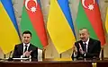 Zelensky and Ilham Aliyev during a press conference in Baku.