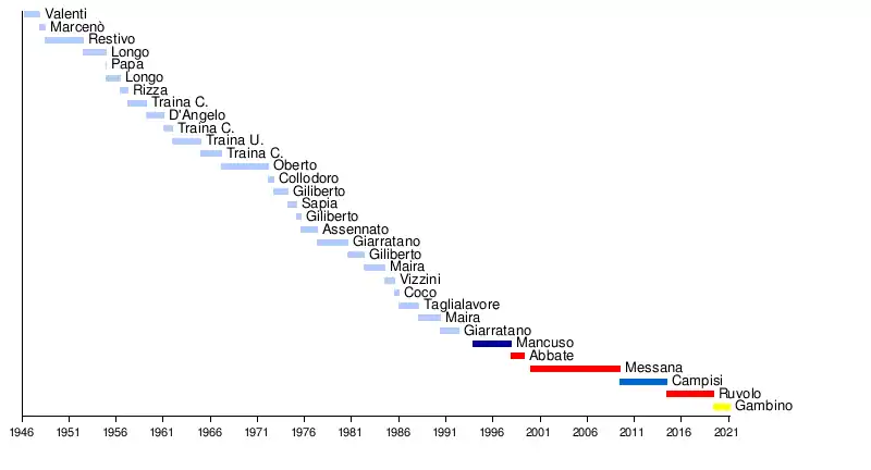 | Giuseppe Mancuso | 6 December 1993 | 15 December 1997 | Italian Social Movement National Alliance | |
